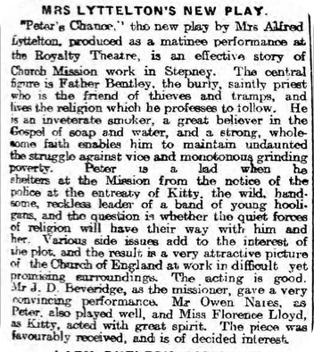 Short summary of the play from the Derby Daily Telegraph, May 18th 1912.