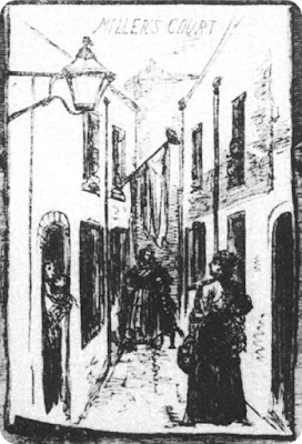 The view to the other end of Miller's Court. The narrow passageway lead out onto Dorset Street ('The worst street in London').